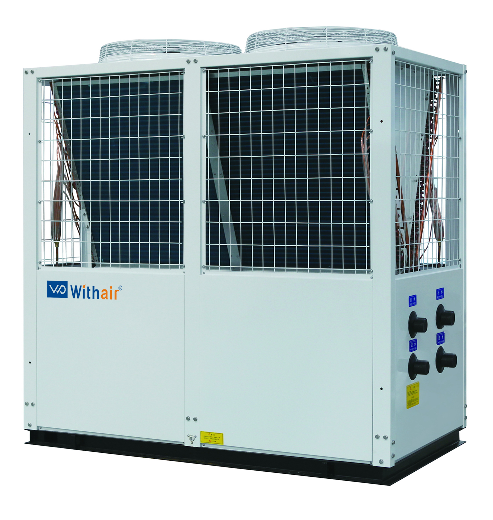 Withair's heat recovery modular air-cooled chiller unit uses the environment-friendly refrigerant R410A and combines the features of Withair's air-cooled chiller unit and air-source heat pump water heater unit. It has two modes: A/C cooling, A/C cooling + heat pump water heating, widely applied in places requiring central air conditioning and water heating, such as: hotels, schools, restaurants, hospitals, villas, bath centers and industry use.